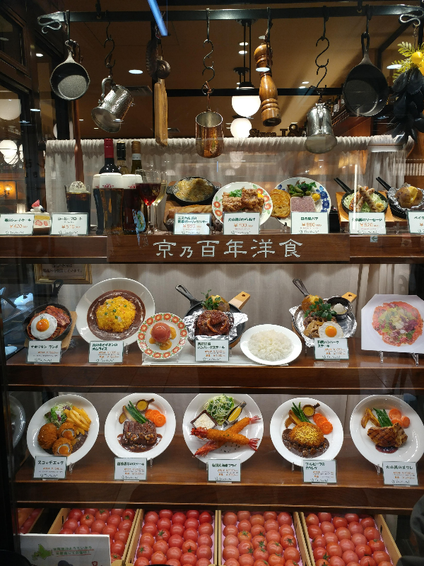 식사시간에는 대체로 웨이팅이 있는 편이다. 오사카에서도 교토에서도 갈 때마다 나는 토마토 샐러드가 맛있어서 가는 편인데 인상적인 것은 매장의 쇼윈도우에 샐러드에 쓰이는 토마토가 항상 저렇게 들어있다. 궁금한 것은 어떻게 일 년 내내 같은 사이즈로 토마토를 공수할 수 있는지 정말 궁금하다. 매장에서 판매되는 식사류를 모형을 만들어서 진열해 뒀기 때문에 무엇을 먹을 것인가를 고를 때 도움이 된다.