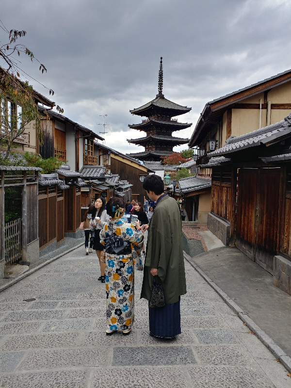 청수사를 돌아보고 내려오는 길에는 스타벅스 니넨자카점이 있고 더 내려오면 %아라비카커피 니넨자카점이 있다. % 아라비카커피 니넨자카점은 거의 테이크아웃이며 실내에는 셰어 테이블 하나가 있어 여행자들끼리 자연스럽게 합석을 하게 된다. 테이크아웃한 커피를 야사카의 탑을 배경으로 찍으면 교토감성 가득한 사진을 찍을 수 있다.