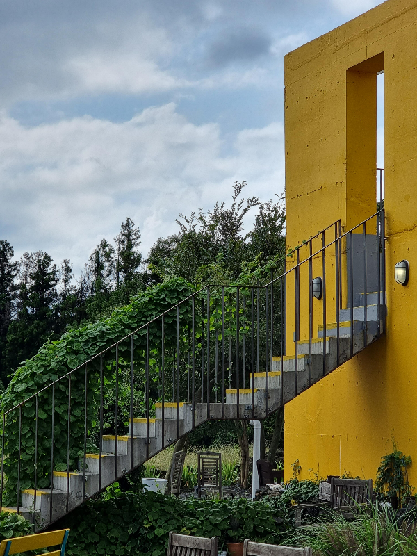 도로에서 한참 떨어져서 숨어 있지만 샛노란 외벽 때문에 한눈에 들어오는 오늘베를린.