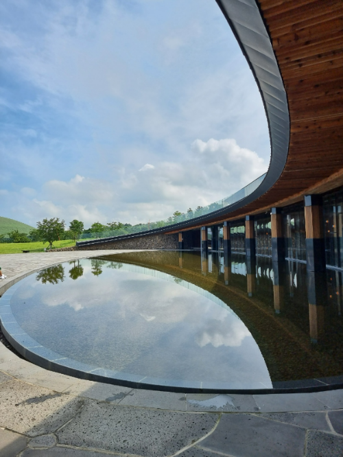 카페의 앞과 뒤가 정말 다른 모습을 하고 있으니 혹시라도 제주당에 간다면 꼭 반대쪽도 같이 구경하시길 바란다. 건물 자체가 앞에서 보면 크다는 것 외에 특별할 게 없어 보이지만 밖에서 보는 건축물의 느낌이 완전 다르고 새별오름을 볼 수 있어서 탁 트인 전망이라 좋다.