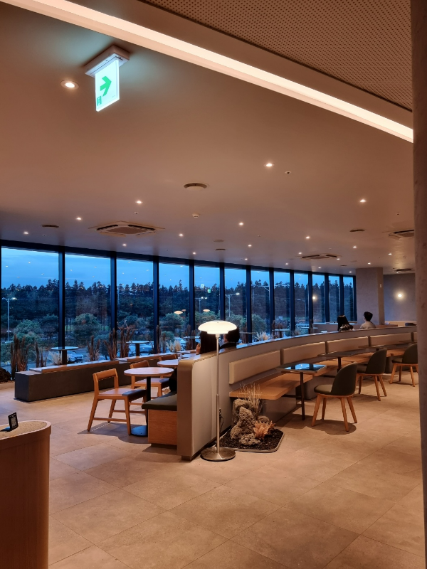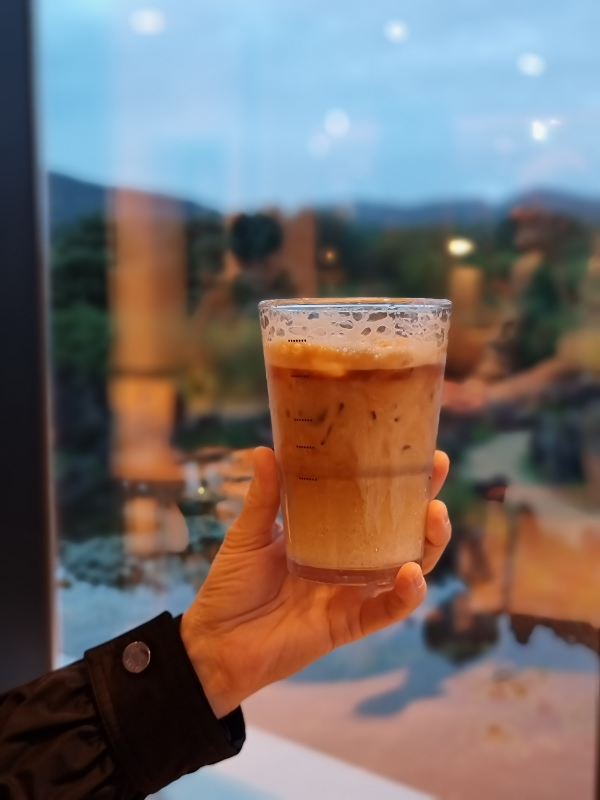 저쪽 창쪽 아래에는 모네의 수련연못이 생각나는 작은 연못이 있는데 싱크로율 장난 아닌 연못이다. 사진에서 보다시피 이미 어둠이 찾아오는 시간대라 정원산책은 못했다. 지금은 핑크뮬리 수국시즌에는 수국이 반겨줄 곳인데 무료로 개방되어 있지만 차후 동화마을은 유료로 바뀐다는 이야기가 있다. 스타벅스 송당점을 나오면 바로 앞에 선물을 구입할 수 있는 제스코관광마트가 있는데 위미리 농협과 연계해서 귤을 택배로 보낼 수 있고 간단한 기념품과 마트가 같이 있으니 숙소로 돌아갈 때 장을 봐서 가도 좋겠다. 대형카페 싫어하시는 분들도 이곳은 정원과 관광마트가 같이 있으니 한번 가보시는 걸 추천한다.