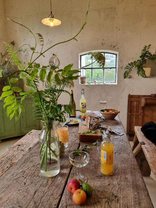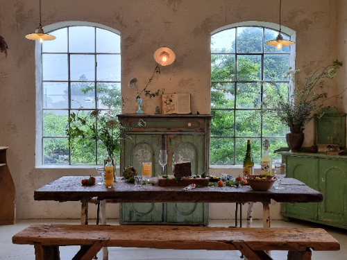 앤디 앤 라라홈뮤즈의 공간의 몇 군데로 나뉘어 있는 듯 하지만 다실을 재외 하고는 다 연결된 공간이다. 쇼룸과 독립된 한 채는 에어비앤비의 숙소로 사용하고 있으며 나머지 공간엔 빈티지 제품들이 가득하게 채워져 있다. 주방과 다이닝룸 같은 콘셉트로 꾸며져 있고 플랜테리어가 잘 되어있어서 이곳에서는 사진 찍기 좋아하는 사람들이라면 백만장쯤 찍어서 나올 수 있는 곳이다. 나도 세번을 갔는데도 계속 셔터를 누르게 되었으니 이 공간이 특별한 공간임을 부정할수가없다. 테이블의 야채는 모두 모조품이 아니니 주의 해야된다. 너무 예쁜 것들이 많아서 물어보니 판매는 따로 하지 않는다고 하셨다. 사진 속의 공간은 마치 파티라도 해야 될듯한 테이블인데 음료나 와인 그리고 과일들이 무심한듯 채워져 있지만 철처하게 계산 되었을 것이다. 저 큰창으로 사계를 보는 것도 참 좋을 것 같다. 귤이 익어가는 계절에는 노랗게 잘 익은 귤을 볼 것이고 눈이 내리면 그 또한 아름다울 것이다. 격자창의 유리밖 세상도 이 곳에서는 모두 아름다운 모습으로 일년을 보여줄것같다. 이런 공간들이 날씨의 영향을 크게 받지 않는 이유가 비가 와도 실내공간을 즐기는 것이라 크게 문제가 없고 오히려 창을 통해서 볼 수 있는 비오는 풍경도 좋았던 기억이 있는 사람이라 여행와서 비가 많이 온다면 그냥 이런 곳에서 작은 풀들과 소품하나하나에 눈인사를 해줘도 좋을 것 같다.