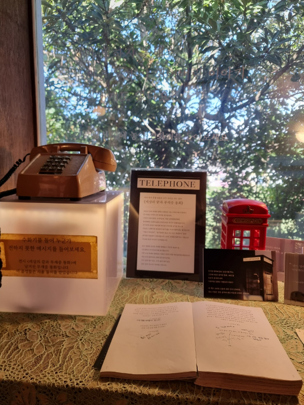 전화기를 들면 그들이 남긴 통화를 들을수가 있다는데 나는 차마 들수가 없었다. 하지 못했던 말을 혼자 독백처럼 남긴 내용이라니 혼자 앞서 생각해서 그 내용들은 아마도 절절할 가슴아픈 이야기들이 더 많을 것이라는 생각이 들었기 때문이다. 앞에 놓여있는 세상의 끝과 부재중이라는 책은 그동안 녹취된 많은 통화중에서 발췌된 내용을 활자화 시킨 것이어서 그 순간에 내 눈에 들어 온 내용이 누군가에게 미안하다 세상살기가 힘들다 등등 힘든 내용들이 많았다. 그즈음에 엄마를 보내드려서 나 또한 엄마에게 못다한 말들이 너무 많았기에 수화기를 들면 바로 울음이 터져버릴지도 모른다는 생각에 수화기를 차마 들지 못했다. 솔직하게 그냥 저 코너를 보는 것만으로도 너무 힘들었다. 결국 들어 보지 못했던 그들의 이야기를 듣는 게 아닌 보기 위해 책을 구입했다.