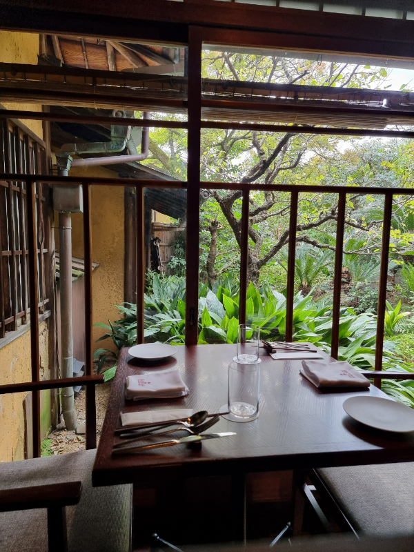 소도는 교토의 유명한 레스토랑으로, 청수사 인근에 위치해있다. 이 레스토랑은 근대 일본 화가 다케우치 세이호의 저택이자 아틀리에로 사용되던 곳을 개조한 건물에서 운영되고 있다. 2천 평 규모의 대지와 정원을 갖추고 있어 고즈넉한 일본 전통 가옥의 분위기를 느낄 수 있으며, 레스토랑 내부에서 교토의 전경과 정원을 감상하며 식사를 즐길 수 있다. 제일 빠른 시간에 예약을 했는데도 창가자리는 먼저 예약한 사람에게 돌아가서 아쉬웠지만 다른 테이블에서도 정원을 볼 수 있어서 괜찮았다.