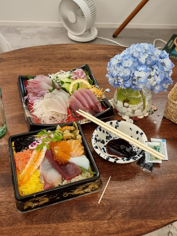사장님께서 준비해주신 웰컴티들로 수시로 차와 커피를 마시고 저녁에 마트에서 사 온 스시와 찌라시스시 도시락은 두 개 만원도 주지 않았다. 늦은 시간에 도착해서 밥 먹으러 나가는 게 마땅치가 않아서 도시락으로 대신했지만 너무 만족스러운 식사였다. 혹시라도 이마이즈미 쪽에 숙소를 얻는다면 본레파스에 가서 먹을 것을 사 온다면 8시 전후로 가보면 할인폭이 크니까 그때 산책 삼아 다녀오는 것도 좋을 것이다. 후쿠오카의 정원은 내게 만족스러운 숙소였기에 다음에 후쿠오카로 여행을 간다면 재방문의사 100%이다. 후쿠오카에 여행하는 동안 나만의 작은 정원이 생긴다는 것은 너무 매력적이지 않은가?