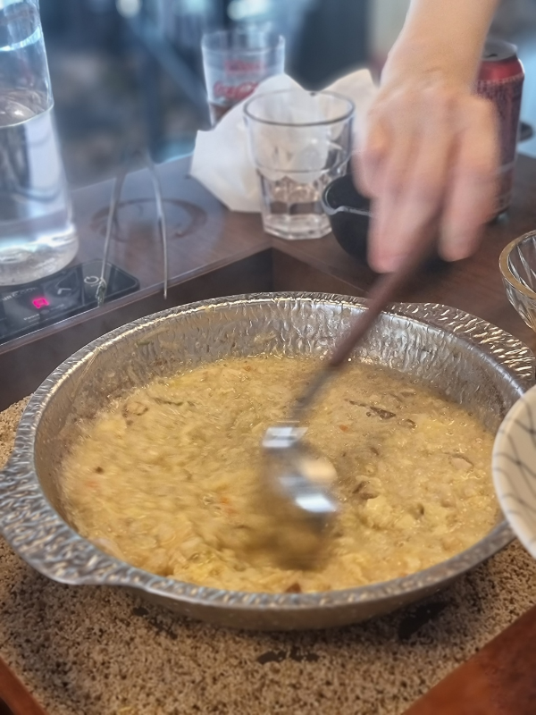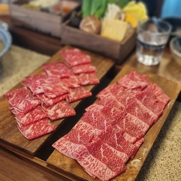 샤브니지에 처음 들어 갔을 때 적산가옥의 멋짐에 한번 놀라고 규모에 한번 더 놀랐다. 카카오로 등록해두고 주변을 구경하면서 기다리다보니 한시간이 금방 지났다. 키오스크로 주문을 하면 세팅을 해주는데 육수를 두가지 선택할 수 있었다. 3명이어서 두가지를 주문했는데 한가지는 조개육수, 다른 한가지는 빨간육수를 선택했는데 조개육수가 훨씬 깔끔한 맛이었다. 세명이서 고기는 5인분 주문했는데 육수가 끓을 때 집어 넣으면 빨리 익게 하기 위해서인지 진짜 얇게 슬라이스해와서 위에서 봤을 때 많아보여도 양은 많은편은 아니다. 그래서 추가주문을 했고 나중에 죽까지 주문해서 먹었더니 배가 불러왔다. 건축물의 구경도 좋았고 샤브샤브의 비주얼과 맛도 좋아서 다음에는 가족들과도 가고 싶다는 생각이 들었던 곳이다.